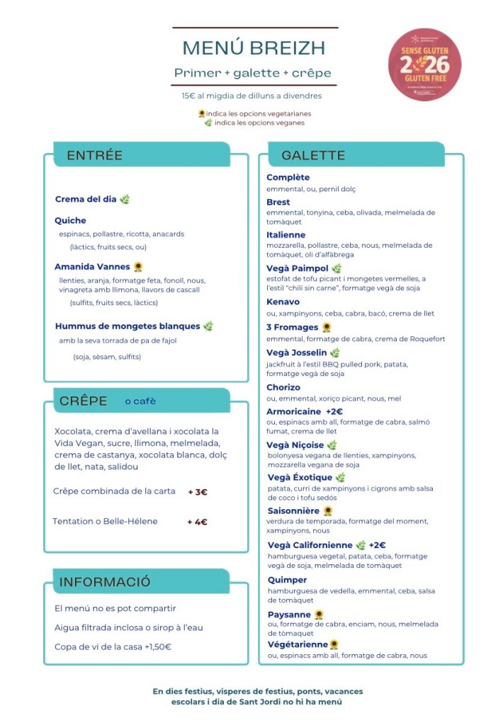 MENÚS BREIZH Comparteix això: Share on X (S'obre en una nova finestra) X Comparteix al Facebook (S'obre en una nova finestra) Facebook M'agrada S'està carregant...